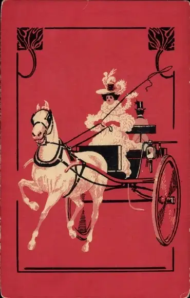 Ak Frau fährt eine Kutsche, Weißes Pferd