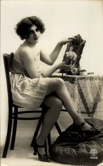 Ak Frau im Unterkleid, Spiegel