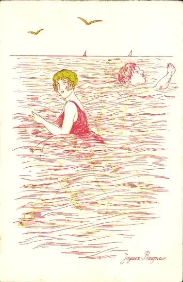 Ak Frau im Wasser, Badeanzug, Bademode, Träume eines Mannes