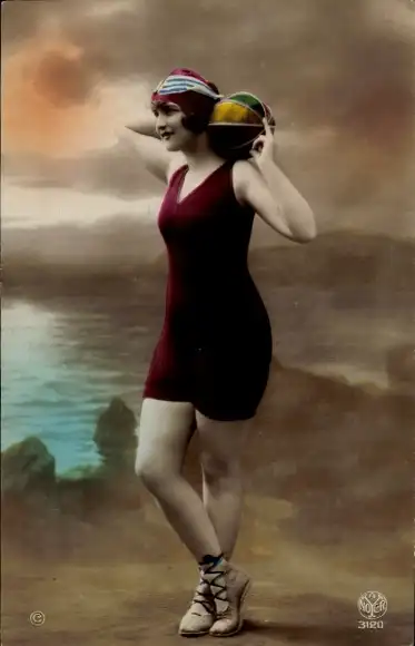 Ak Frau im roten Badeanzug