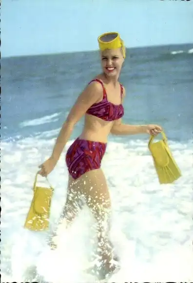 Ak Frau in Bikini, Wasser, Flossen