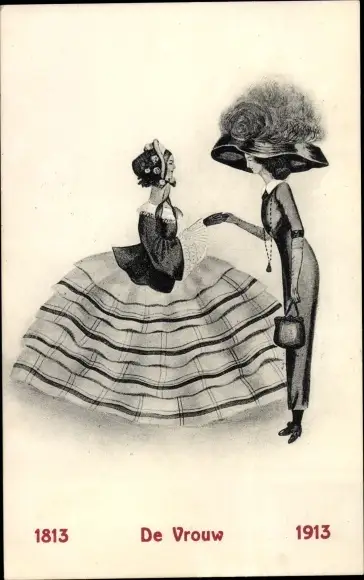 Ak Frau in Kleid, Frau mit Hut, Portrait, De Vrouw, Mode 1813 - 1913