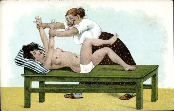 Ak Frau in Unterhose bei der Massage, Masseurin, Busen
