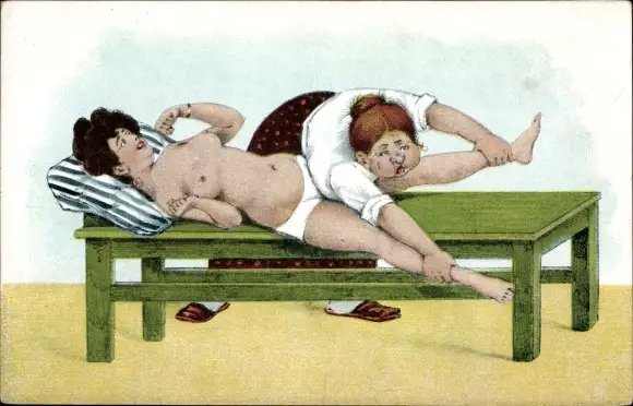 Ak Frau in Unterhose bei der Massage, Masseurin, Busen