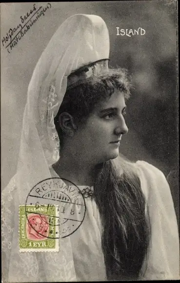 Ak Frau in islandischer Tracht, Portrait