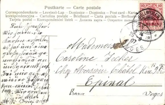 Zustand, siehe Scan, gelaufen, 1907 - ca 3 cm X 5 cm