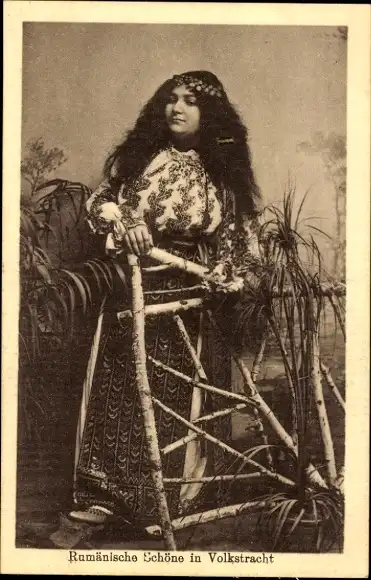 Ak Frau in rumänischer Volkstracht, Haarschmuck