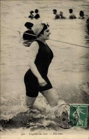 Ak Frau in schwarzem Badeanzug, Bademode