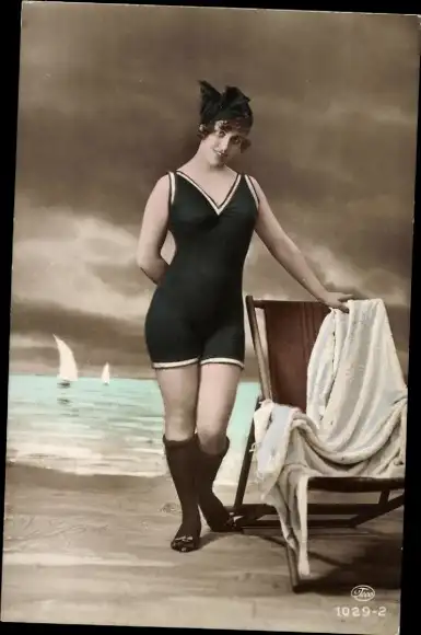 Ak Frau in schwarzem Badeanzug, Porträt
