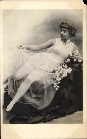 Ak Frau in weißem Kostüm, Blumen, Standportrait