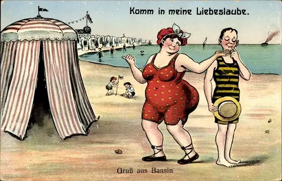 Ak Frau lädt ihren Mann in ihre Liebeslaube am Bansiner Strand ein