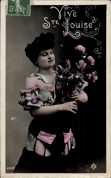 Ak Frau mit Blumenstrauß, Porträt, Sankt Louis