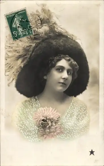 Ak Frau mit Hut, Portrait