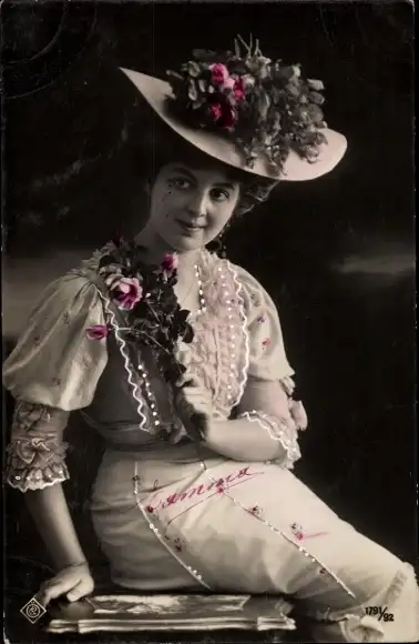 Ak Frau mit Hut, Portrait