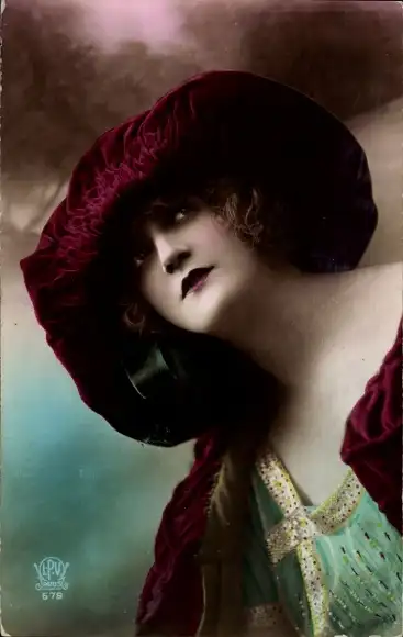 Ak Frau mit Hut, Portrait