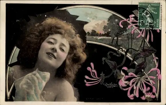 Ak Frau mit hellen Haaren, Blumen, Portrait