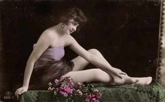 Ak Frau posiert im Tüllkleidchen, schulterfrei