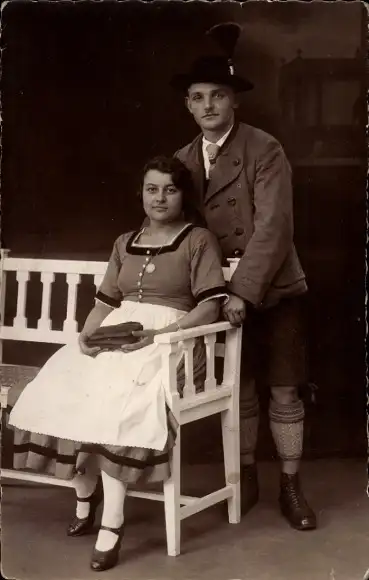 Ak Frau und Mann in bayerischer Tracht, Portrait