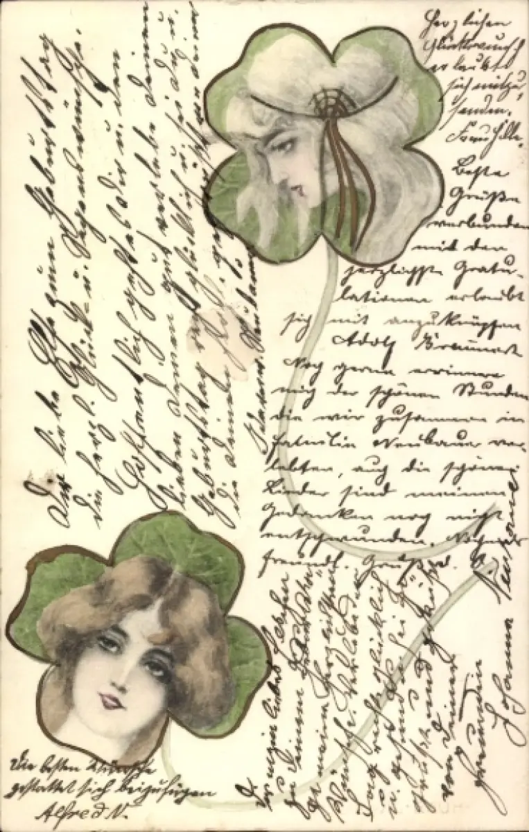 Ak Frauen-Porträts, Glücksklee