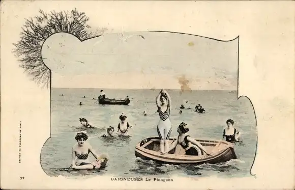 Ak Frauen im Wasser, Bademode, Ruderboot
