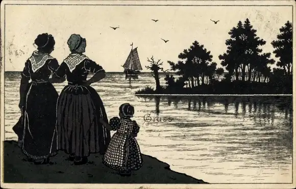 Ak Frauen in niederländischer Tracht, Segelschiff, Mädchen