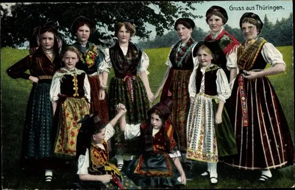 Ak Frauen und Mädchen in Thüringer Volkstrachten