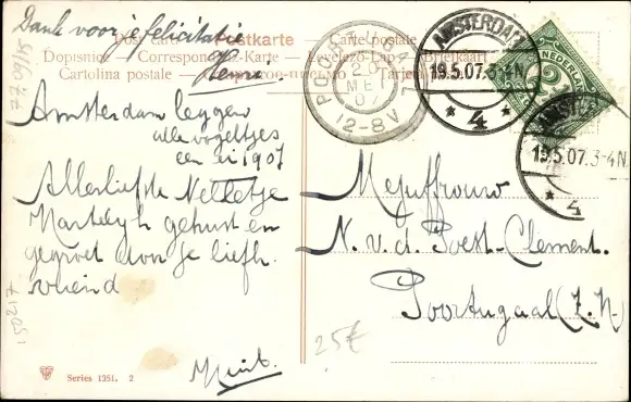 Zustand, siehe Scan, gelaufen, 1907 - ca 14 cm X 9 cm