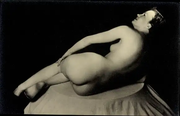 Ak Frauenakt, nackte Frau auf einem Podest liegend, Po, Busen