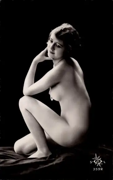 Ak Frauenakt, sitzend, Perlenkette, Busen