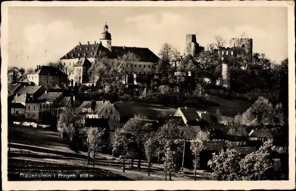 Ak Frauenstein im Erzgebirge, Ortsansicht, Burgruine