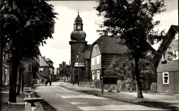 Ak Frauenwald Ilmenau in Thüringen, Straßenpartie, Kirche