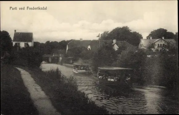 Ak Frederiksdal Dänemark, Flusspartie, Boote, Häuser