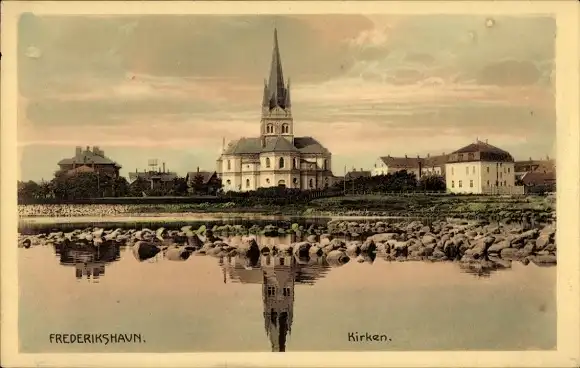Ansichtskarte, Postkarte, Kirche, Stadtkirche, Gotteshaus, Sakralbau, Dänemark