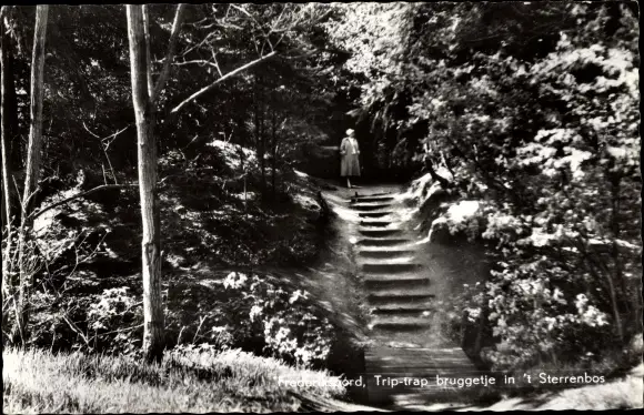 Ak Frederiksoord Drenthe, Hotel Frederiksoord, Trip trap bruggetje in 't Sterrenbos