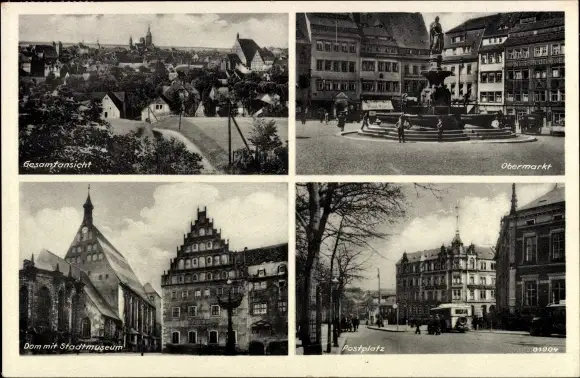 Ak Freiberg Sachsen, Gesamtansicht, Obermarkt, Dom, Stadtmuseum, Postplatz
