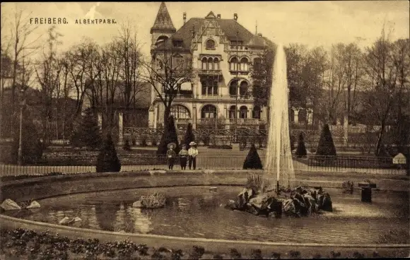 Ak Freiberg in Sachsen, Albertpark, Springbrunnen