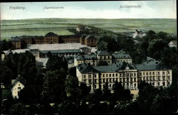 Ak Freiberg in Sachsen, Die Jägerkaserne mit Justizgebäude, Zieher