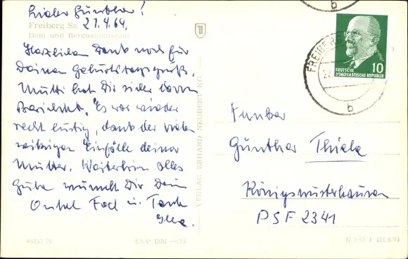 Zustand, siehe Scan, gelaufen, 1964 - ca 9 cm X 14 cm
