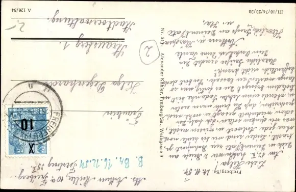 Zustand, siehe Scan, gelaufen, 1954 - ca 9 cm X 14 cm
