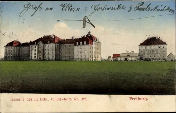 Ak Freiberg in Sachsen, Kaserne des III Batls. 16. Infanterie Regiment Nr. 182