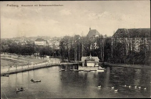Ak Freiberg in Sachsen, Kreuzteich mit Schwanenschlösschen