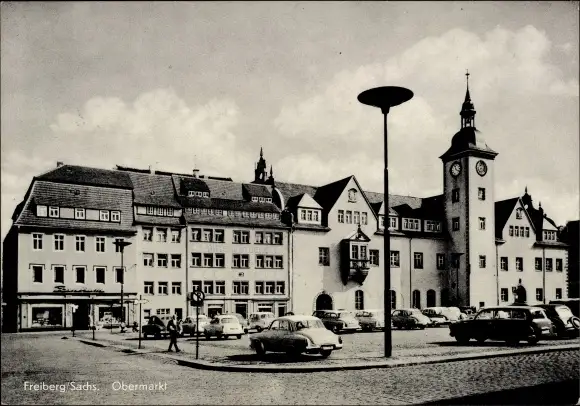 Ak Freiberg in Sachsen, Obermarkt, Autos