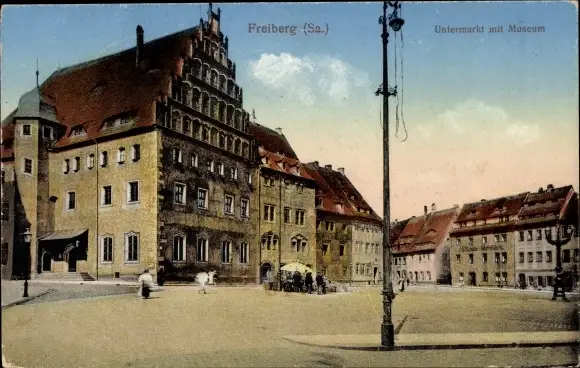 Ak Freiberg in Sachsen, Untermarkt mit Museum