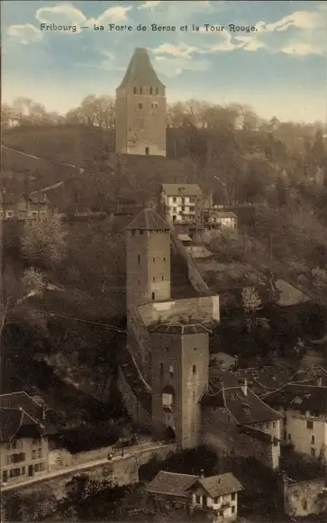 Ak Freiburg Freiburg Stadt Schweiz, Berner Tor und der Rote Turm
