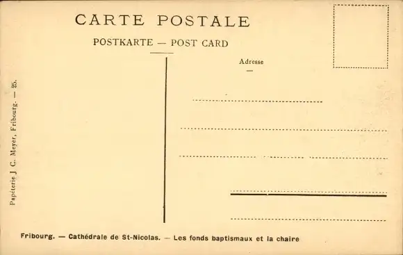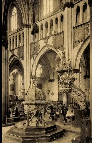 Ak Freiburg Stadt Freiburg Schweiz, Kathedrale St. Nikolaus, Taufbecken, Kanzel