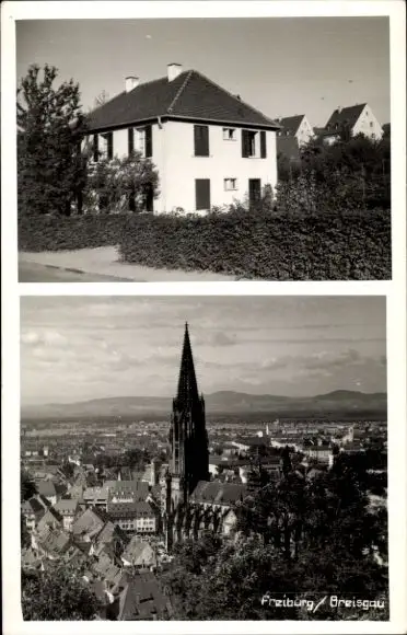 Ak Freiburg im Breisgau, Gesamtansicht, Kirche, Häuser