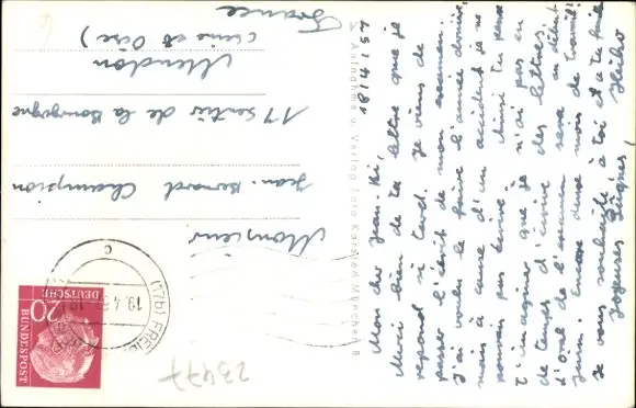 Zustand, siehe Scan, gelaufen, 1957 - ca 3 cm X 5 cm