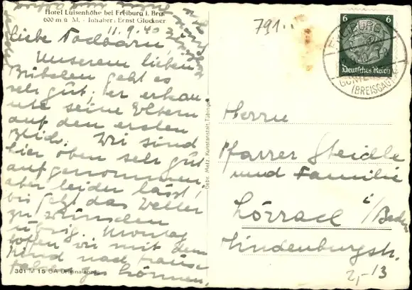Zustand, siehe Scan, gelaufen, 1940 - ca 15 cm X 10 cm