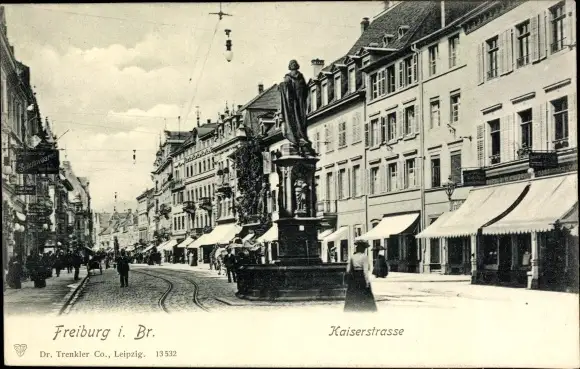 Ak Freiburg im Breisgau, Kaiserstraße, Denkmal, Geschäfte