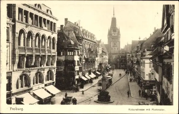 Ak Freiburg im Breisgau, Kaiserstraße, Martinstor
